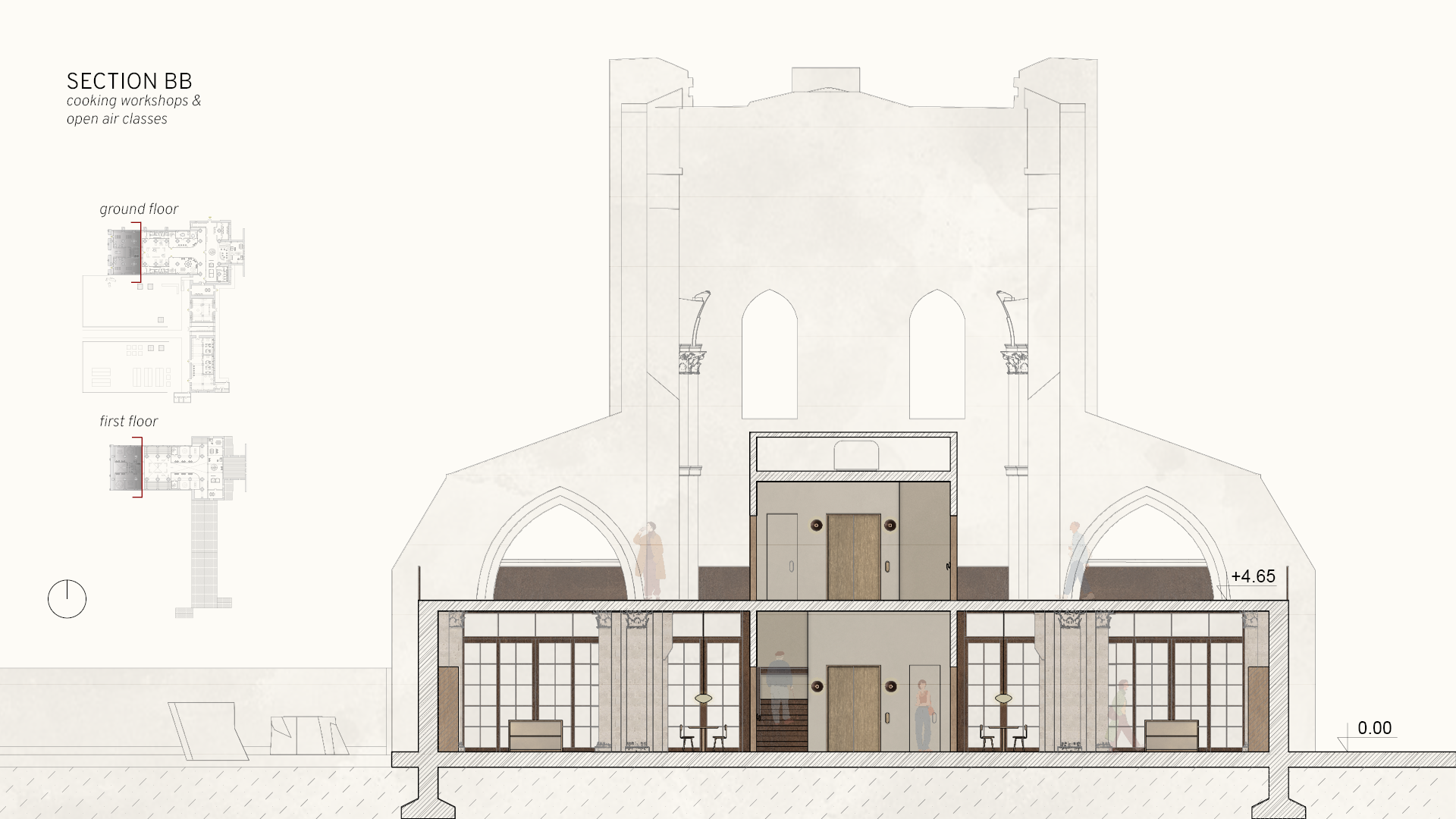 Set within the historic ruins of San Galgano Abbey, this thesis project explores how community can be rebuilt through shared food-related rituals rooted in the land. Cultivation, preparation and collective meals become tools for connection, using food as a medium through which people meet, learn and belong. The abbey’s open structure and enduring material presence create a setting where past and present naturally converge.
